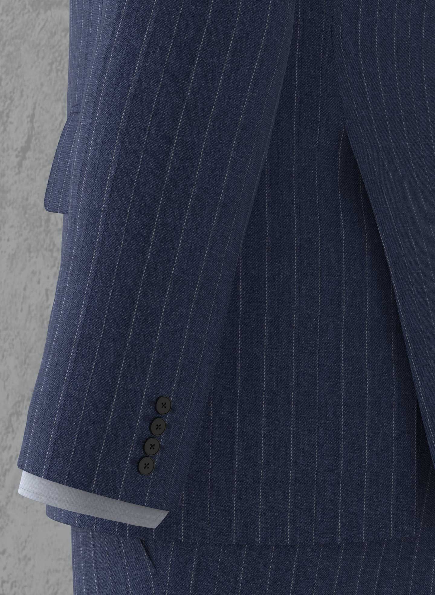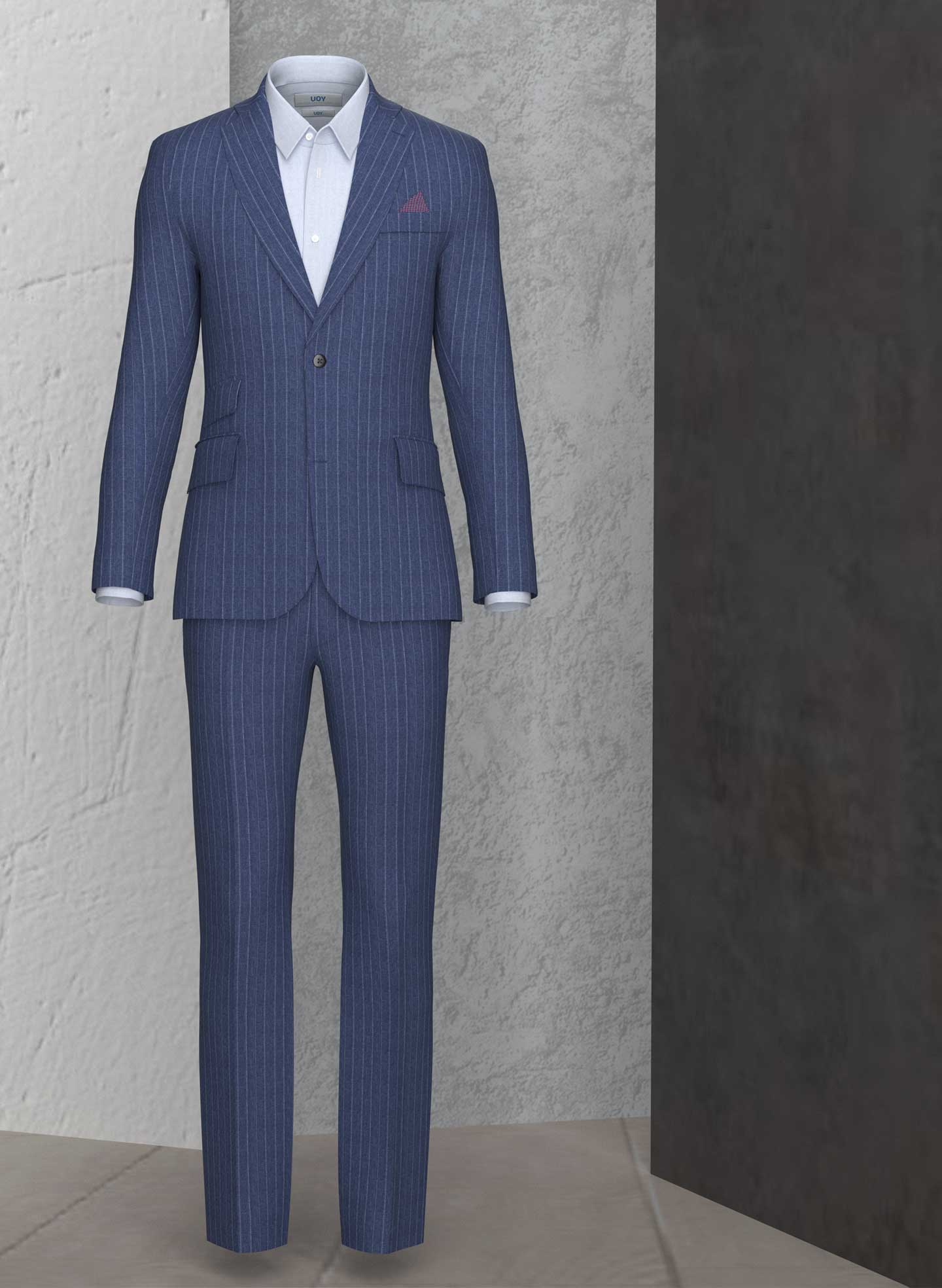 This blue striped suit from Solbiati, is a constructed fabric of 100% Linen. This fabric of great character is perfect for creating versatile yet extremely refined garments weighing 340 g/m. A fabric that will last you a lifetime. We suggest blue leather sneakers for the complete look.
