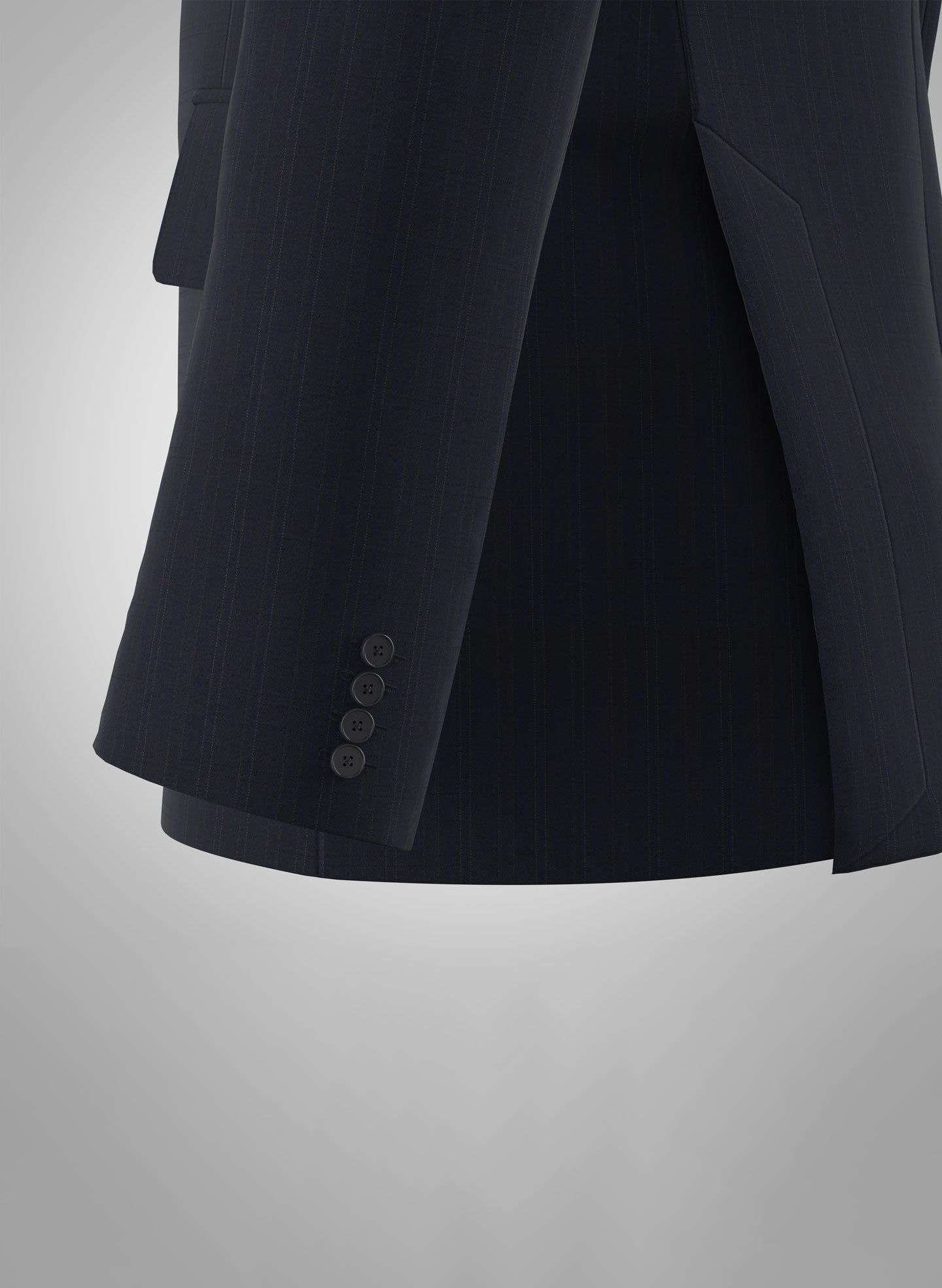 This blue lightly striped jacket from Loro Piana, is a constructed fabric of 130's Super Wool. By combining traditional elegance with the highest degree of wearability it is designed for every season of the year weighing 260 g/m. An all year appropriate fabric that will last you a lifetime. We suggest a white shirt for the complete look.