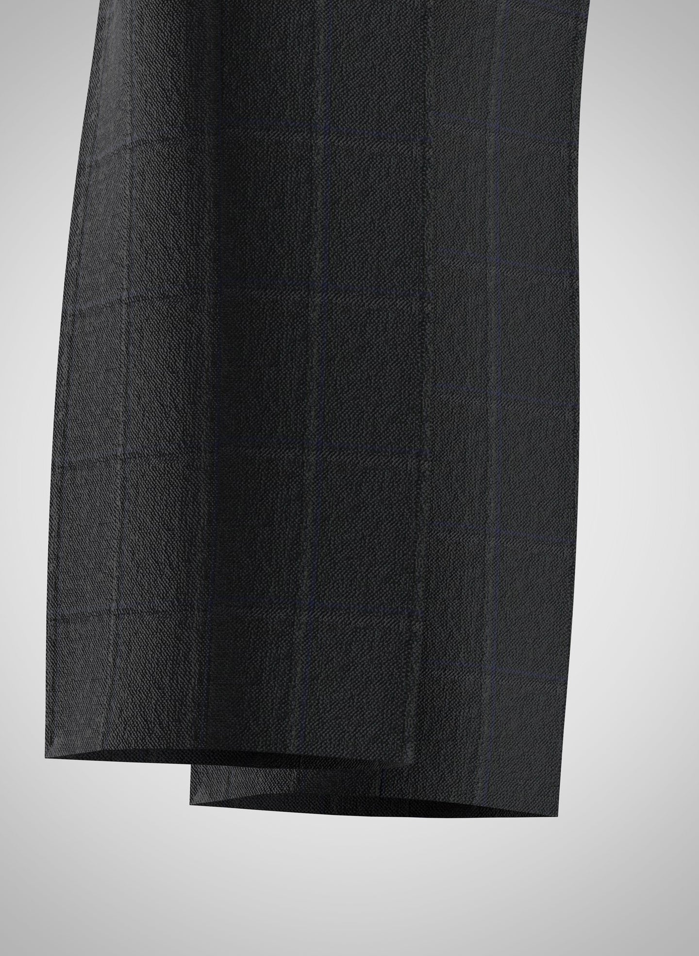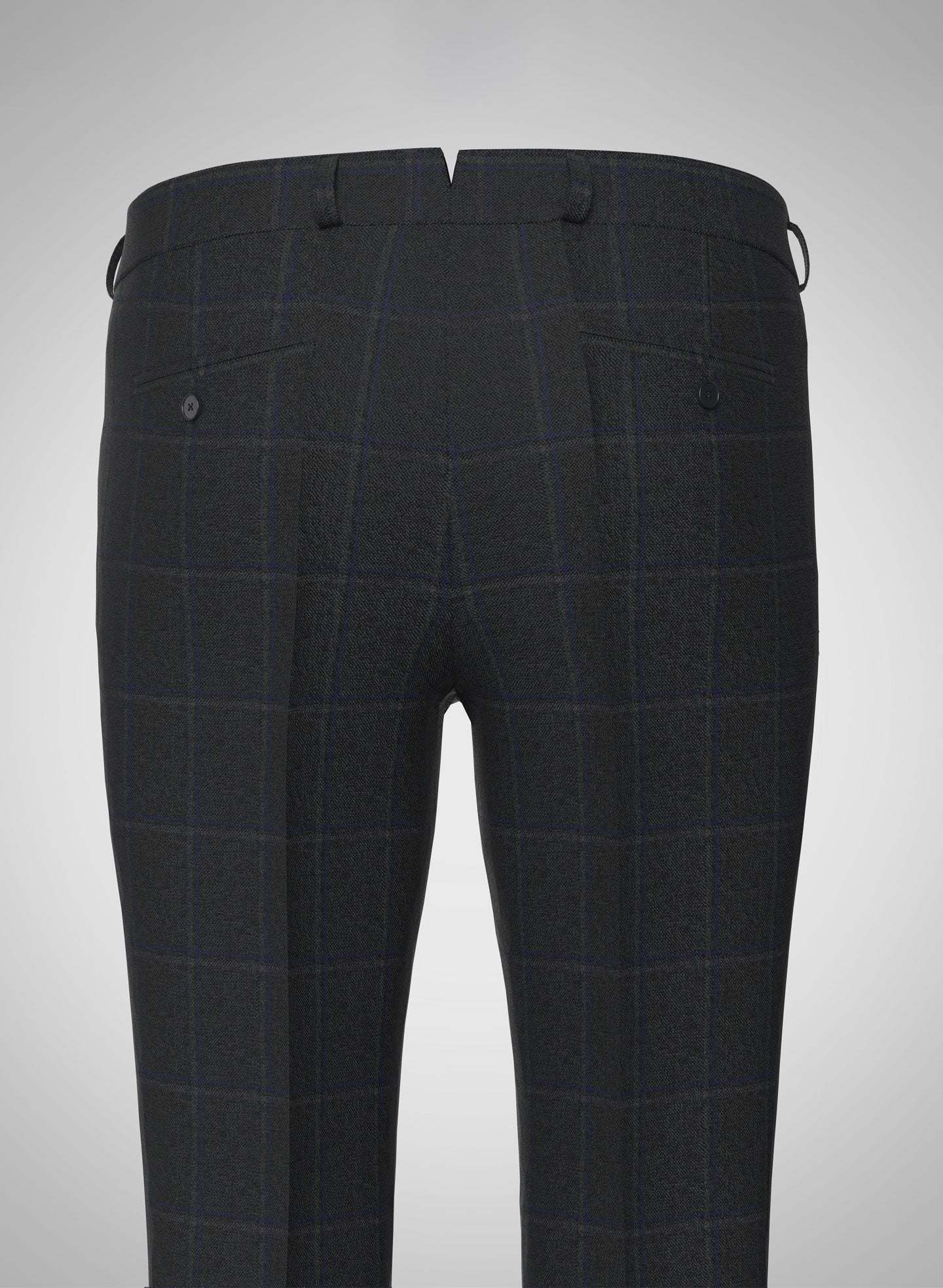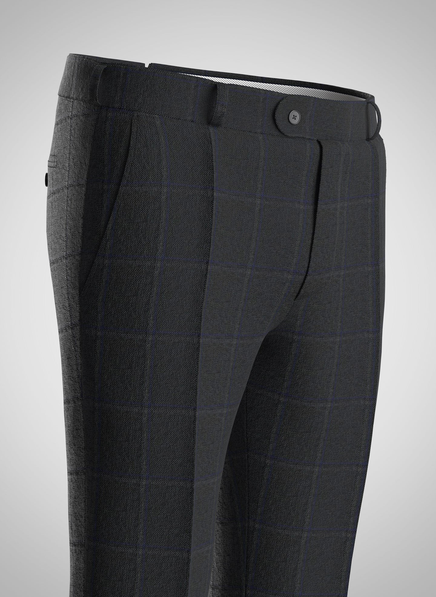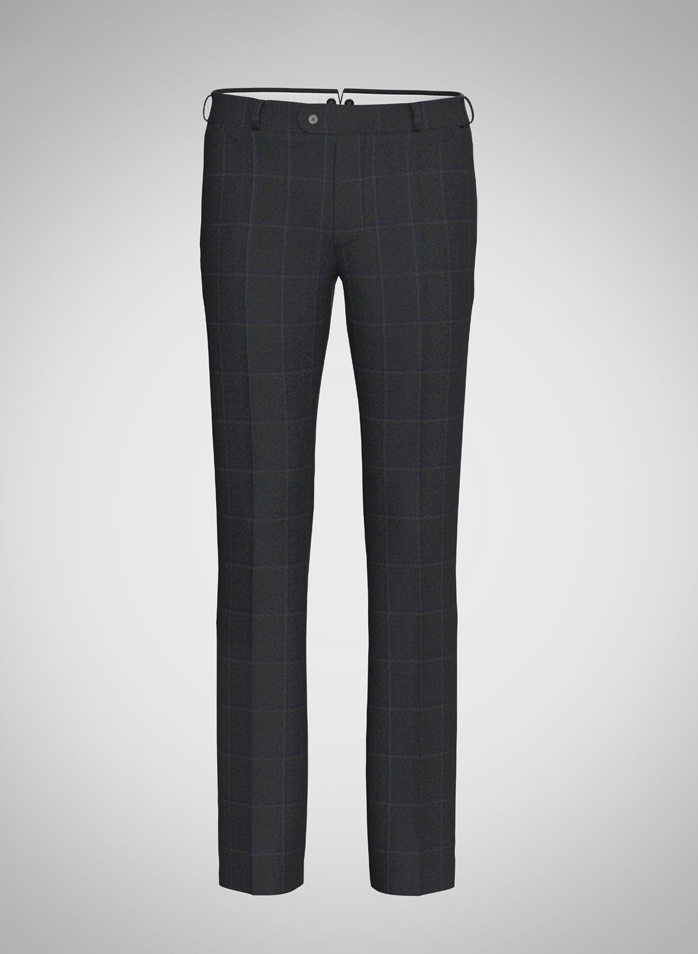 These dark grey checkered trousers from Dormeuil, is a high performance fabric made from pure Merino Wool. Designed for every season of the year weighing 300 g/m. An all year appropriate fabric that will last you a lifetime. We suggest a violet shirt for the complete look.