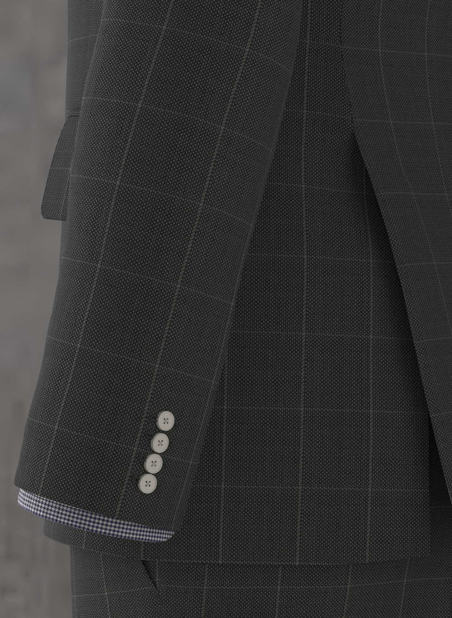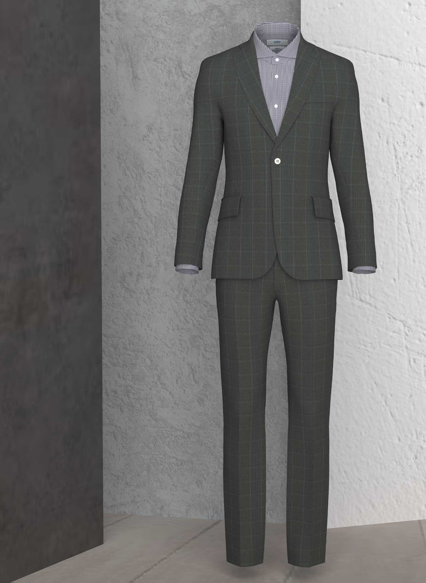This grey checkered suit from Dormeuil, is a fabric made from an innovative compact thread which results in a product with an excellent drape. Designed for every season of the year weighing 260 g/m. An all year appropriate fabric that will last you a lifetime. We suggest to combine with Grey Patina Oxford Shoes for the complete look.