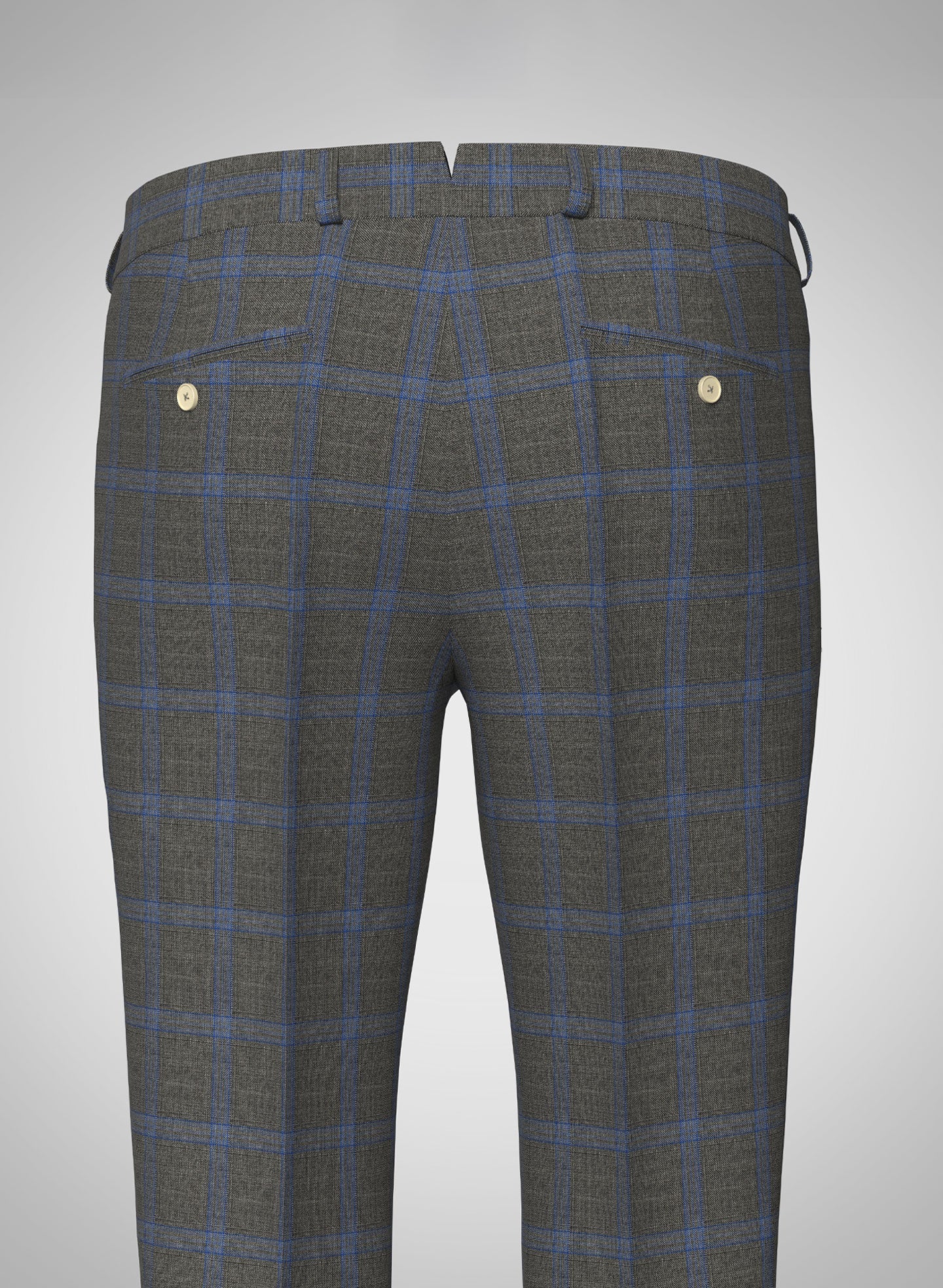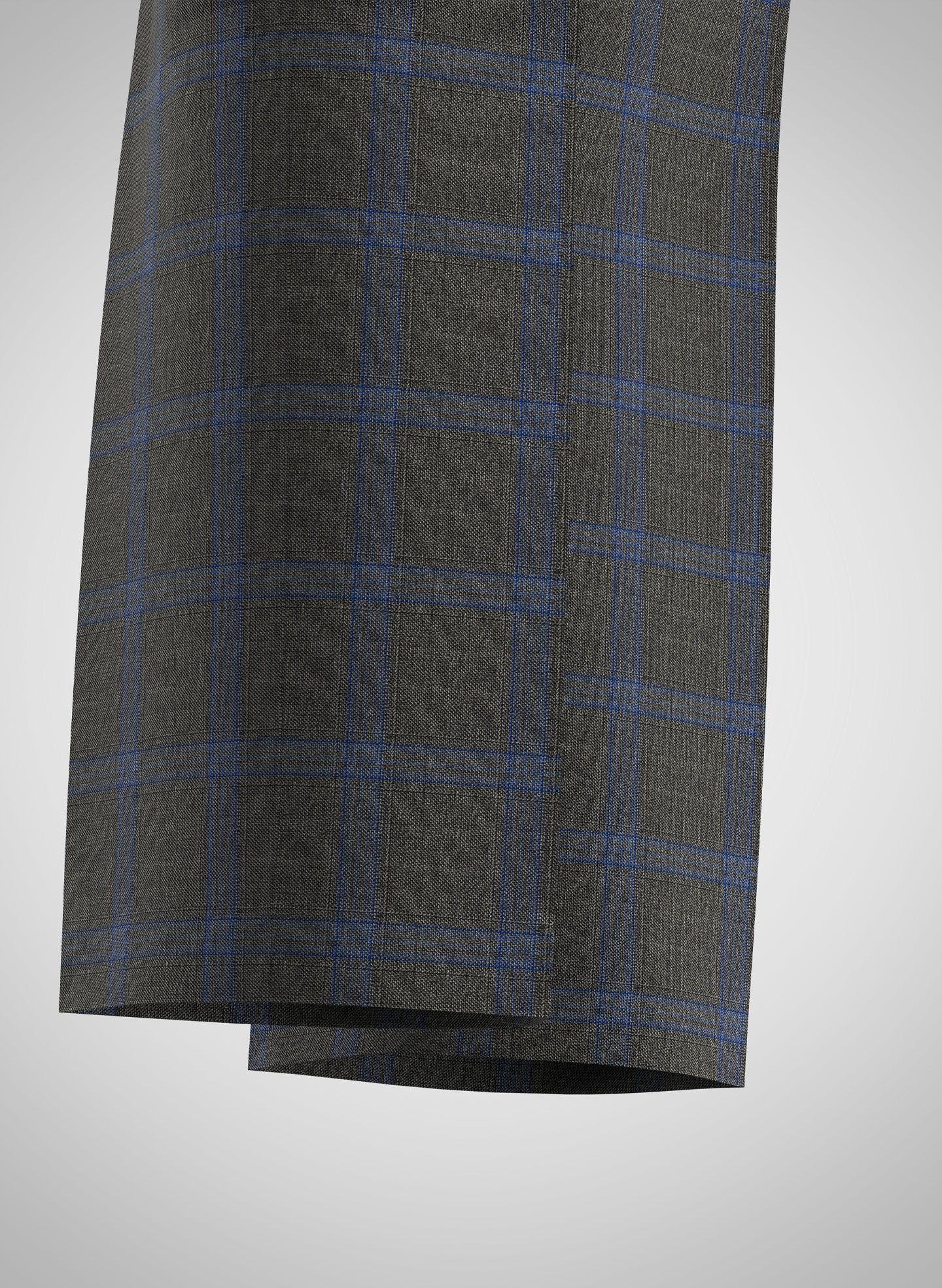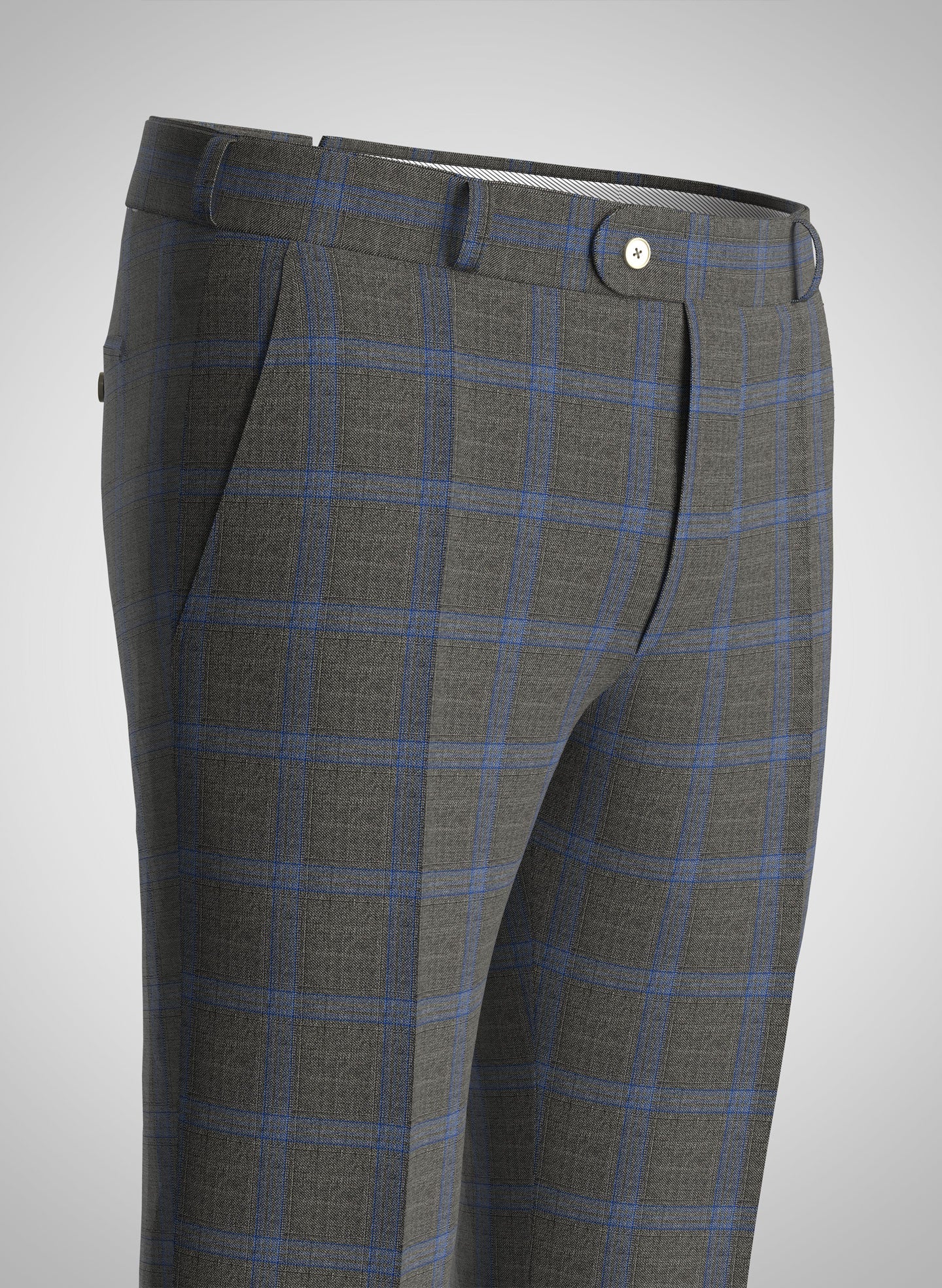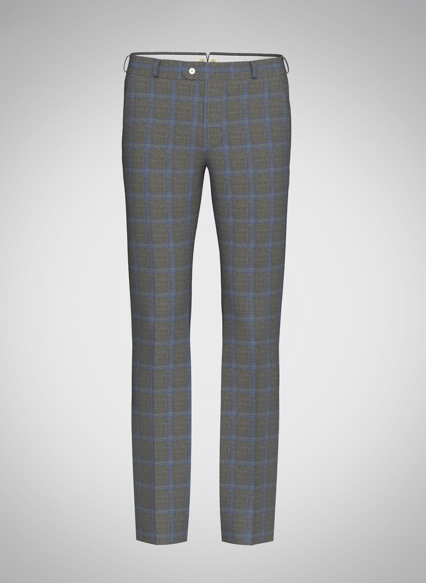 These grey checkered trousers from Loro Piana, is a constructed fabric of 170's Super Wool. The exceptional Merino Wool of only 15 microns makes it possible to create a lightweight fabrics which is extraordinarily soft and flowing weighing 260 g/m. An all year appropriate fabric that will last you a lifetime. We suggest a dark blue striped shirt for the complete look.