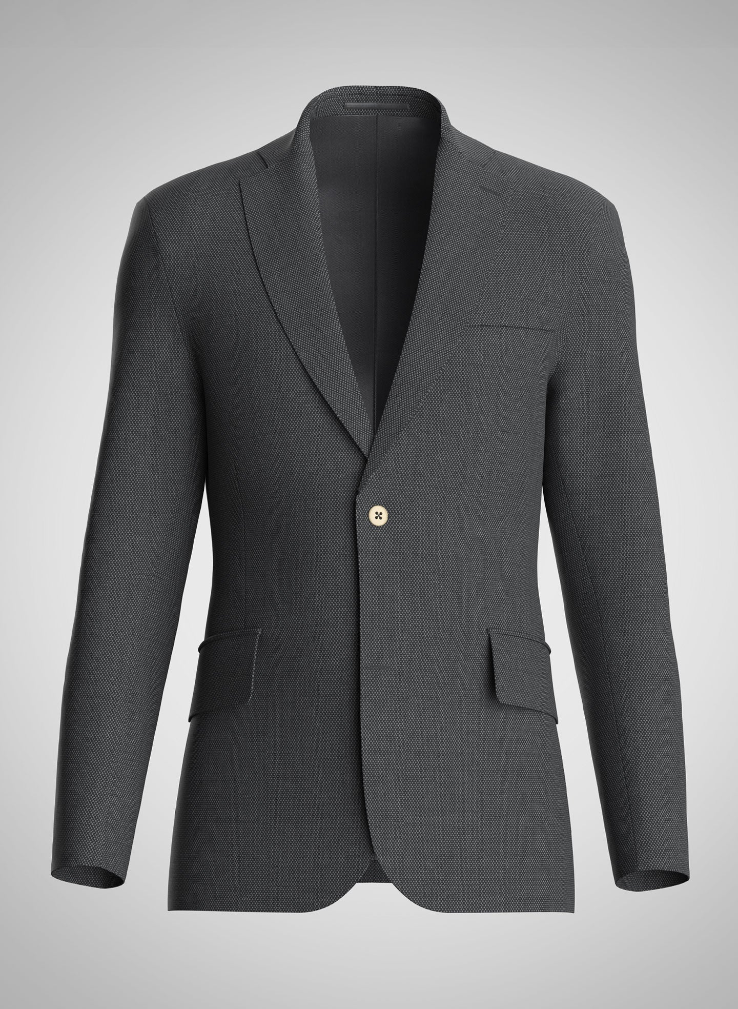 This grey eye bird jacket from Loro Piana, is a constructed fabric of 150'S Super Wool and is known to stand out for its comfort, breathability, fluidity and feather-light feeling weighing 250 g/m. An all year appropriate fabric that will last you a lifetime. We suggest a white shirt for the complete look.
