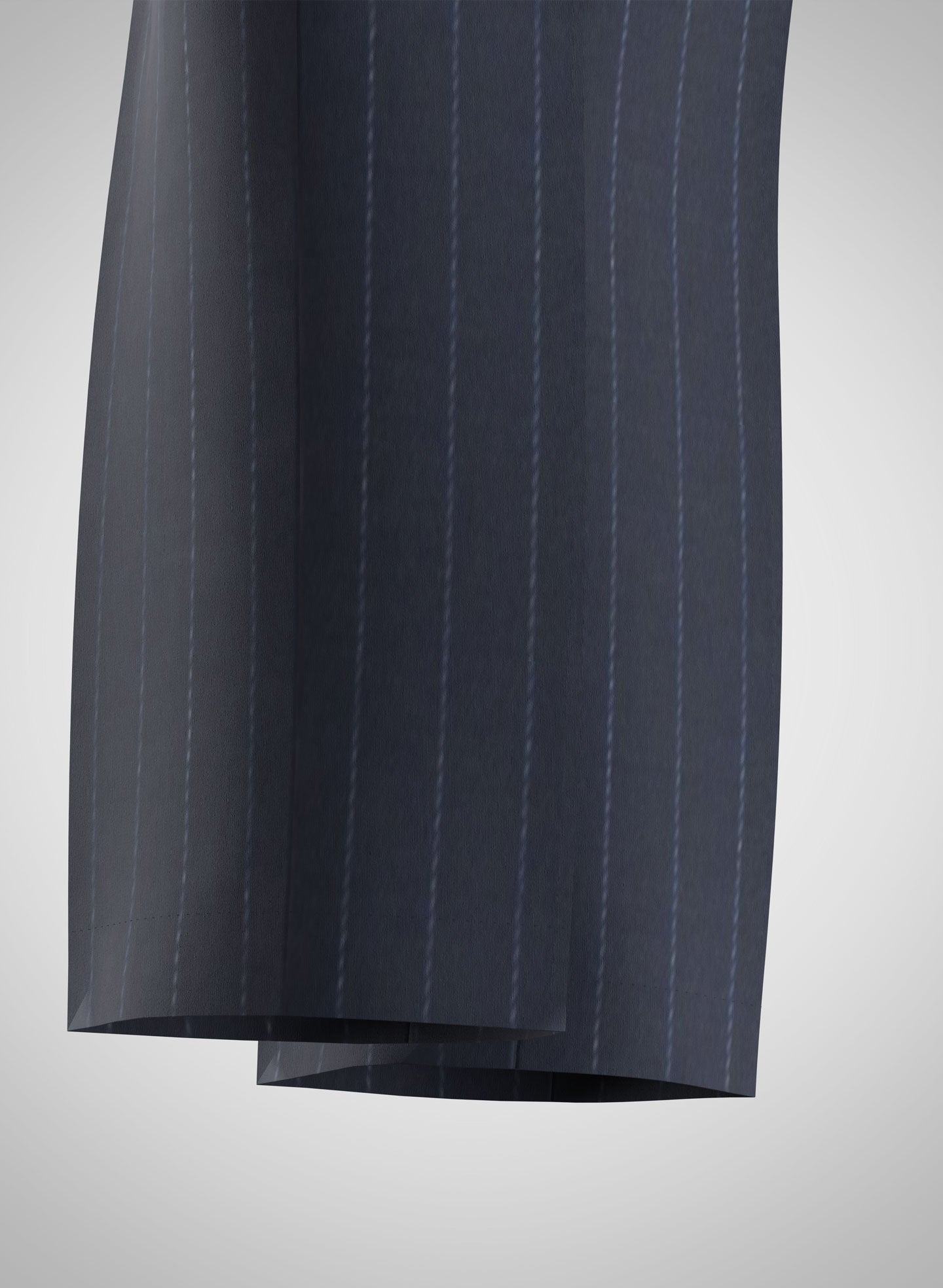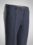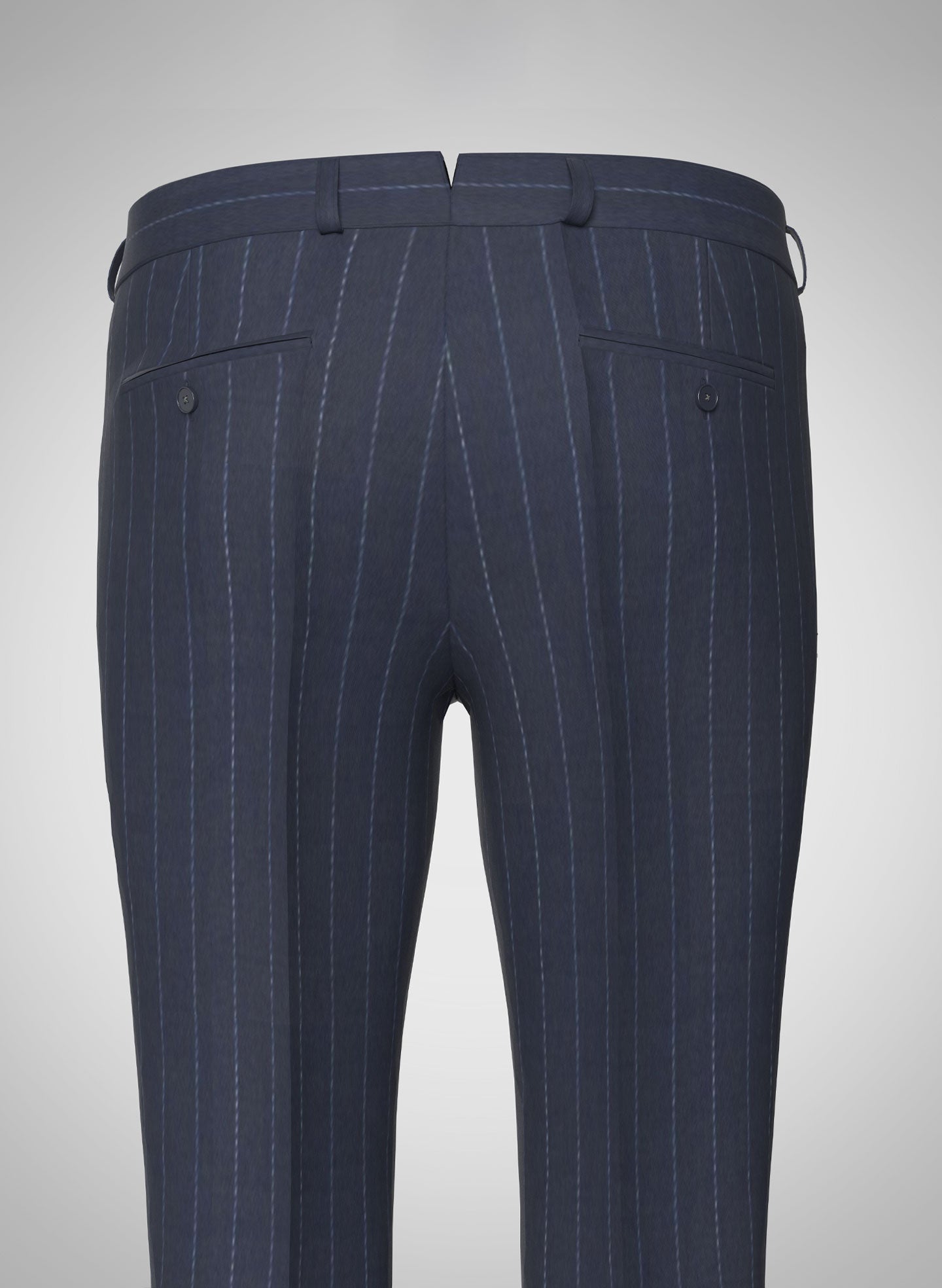 These blue lightly striped trousers from Loro Piana, is a constructed fabric of 130's Super Wool. By combining traditional elegance with the highest degree of wearability it is designed for every season of the year weighing 260 g/m. An all year appropriate fabric that will last you a lifetime. We suggest a white shirt for the complete look.
