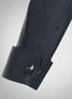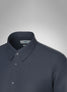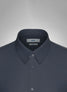 This blue Albini poplin shirt is smooth and crisp in texture and its characteristic long staple yarns create a silky yet strong surface. It is tightly woven with fine yarns using a simple over and under weave pattern weighing 106 grm. We suggest grey trousers for the complete look.