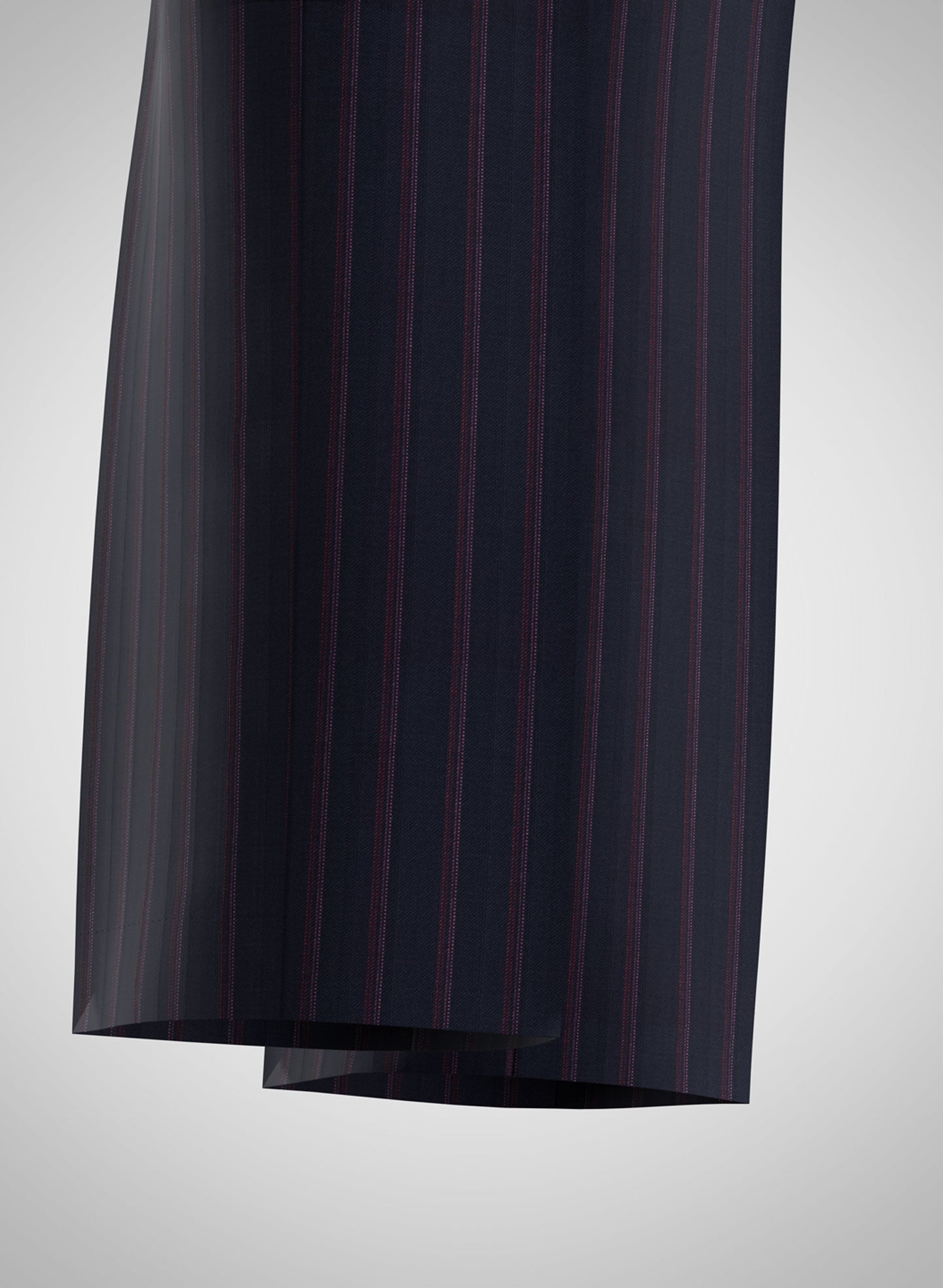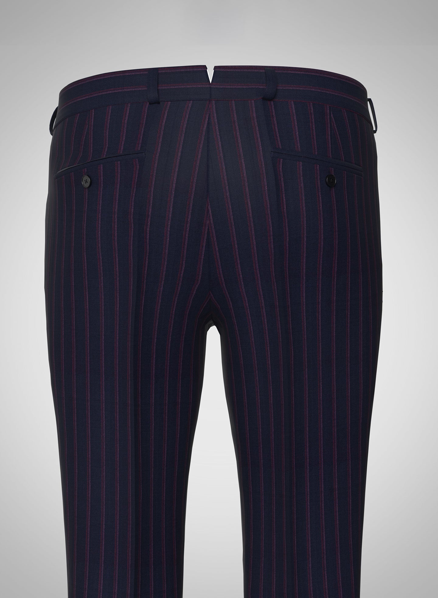 These blue striped trousers from Loro Piana, is a constructed fabric of 170's Super Wool. The exceptional Merino Wool of only 15 microns makes it possible to create a lightweight fabrics which is extraordinarily soft and flowing weighing 260 g/m. An all year appropriate fabric that will last you a lifetime. We suggest a Violet Shirt for the complete look.