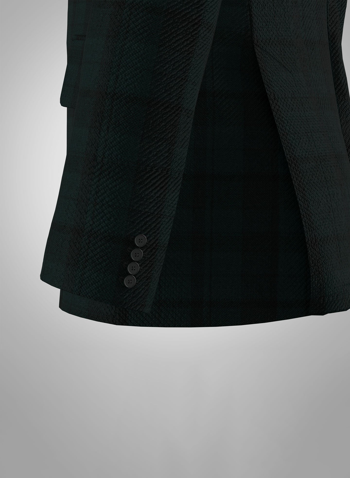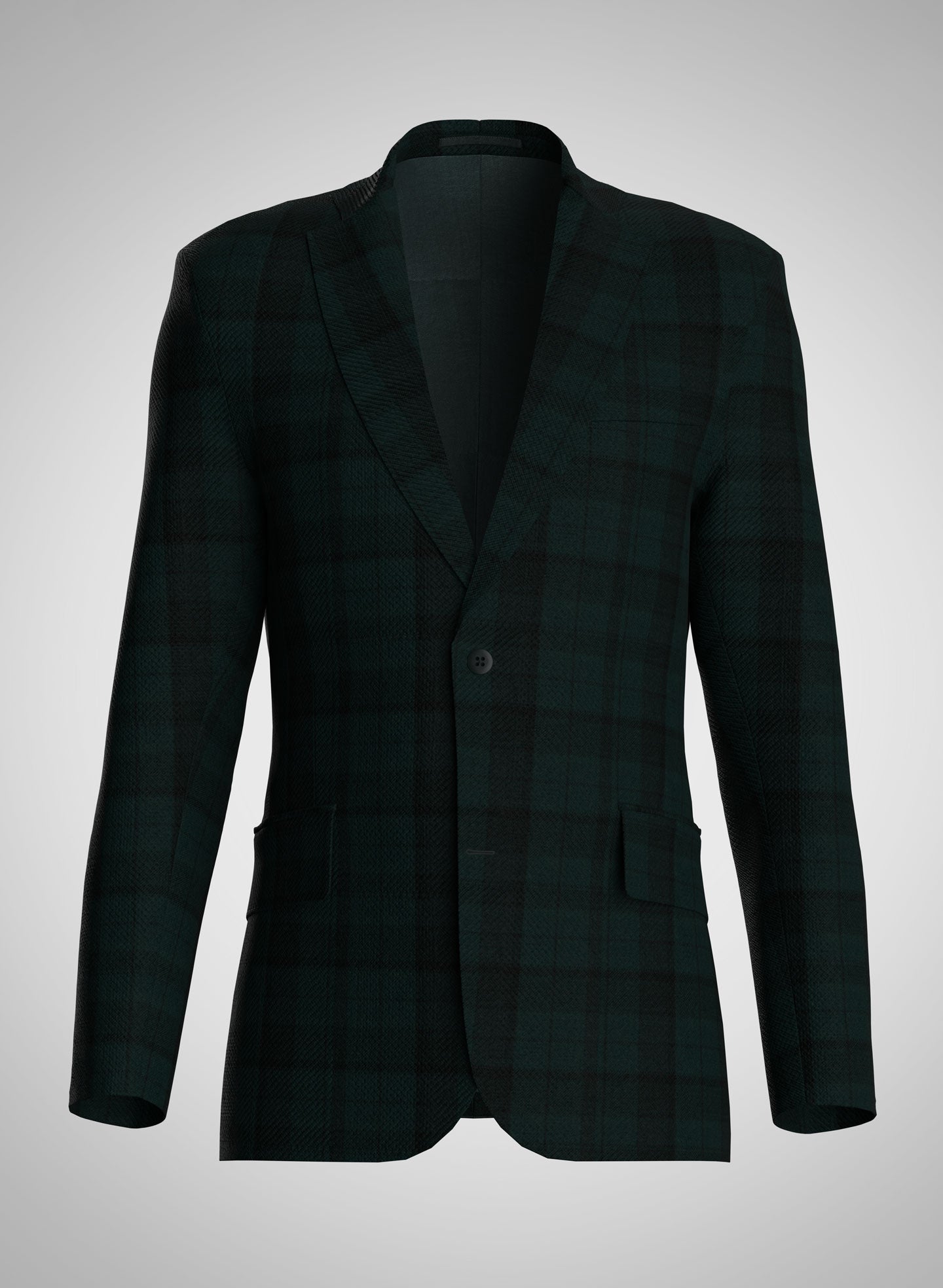 This green Prince of Wales jacket from Dormeuil, is a fabric made from an innovative compact thread which results in a product with an excellent drape. Designed for every season of the year weighing 260 g/m. An all year appropriate fabric that will last you a lifetime. We suggest a white shirt for the complete look.